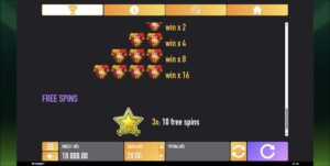 Další lákavou funkcí je symbol scatter, který se zobrazuje ve tvaru hvězdy na 2., 3. a 4. válci. A teď pozor – pokud se vám podaří vytočit scatter na druhém válci, roztočí se třetí a čtvrtý válec znovu! To je jako mít druhou šanci na vytočení dalších hvězd, a pokud se vám podaří získat tři scatter symboly, spustíte speciální hru Bonus 64. Tady se dostanete do úplně nového herního prostředí, které je plné možností. S 64 výherními liniemi a točícími se válci pouze na 2., 3. a 4. pozici se ocitnete v režimu criss-cross, kde se vám naskytne ještě více příležitostí na výhry. A jako třešnička na dortu dostanete 10 free spinů! Kdo by odolal takové šanci?