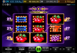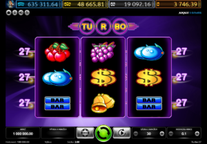 Slot oplývá vizuálními prvky, které okamžitě upoutají pozornost každého hráče. Kombinace tmavých odstínů a fialové barvy vytváří atmosféru vzrušení a očekávání, která je pro automaty tak typická. Nad válci se majestátně tyčí nápis „TURBO“, elegantně zarámovaný ve více kruzích, což dodává celému designu na dynamice a pocitu rychlosti. Hráči, kteří se rozhodnou roztočit válce, jsou vtaženi do světa, kde se snoubí klasické symboly s moderním nádechem. Mezi těmito symbolem se nacházejí dobře známé ikony, které evokují nostalgii a vzrušení z tradičních hracích automatů. Pomeranče, švestky, třešně a hrozny, které se na válcích objevují, představují nejen šťavnaté ovoce, ale také možnost vyhrát atraktivní násobky sázky.