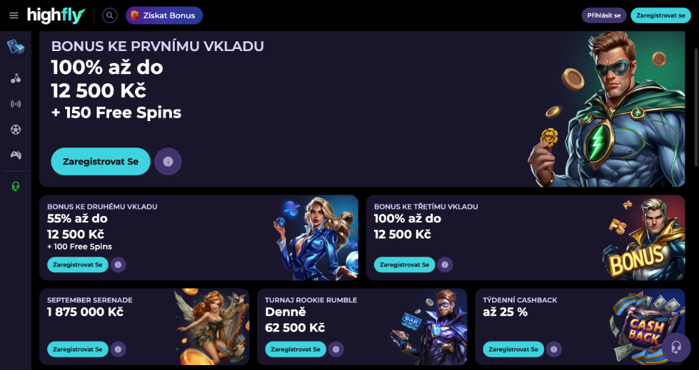 Casino HighFlyBet už v minulých měsících ukázalo, že to s bonusy myslí opravdu vážně. Tento mladý hráč na trhu si rychle získává pozornost díky originálnímu vizuálu a hravému systému odměn, který láká nováčky i zkušené sázkaře. Přehledné prostředí, český jazyk na webu a bohatý výběr her dělají z HighFlyBet atraktivní místo pro zábavu – i když je třeba počítat s tím, že podmínky bonusů i komunikace podpory probíhají výhradně v angličtině. A právě bonusové nabídky z předešlých měsíců se staly jedním z hlavních taháků, které hráče udržely ve hře.