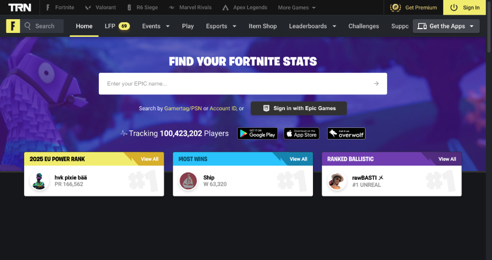 Fortnite Tracker je dostupný přímo přes oficiální webovou stránku fortnitetracker.com, kde si můžete zobrazit statistiky po zadání svého herního nicku nebo Epic ID. Není nutná žádná instalace – všechny základní funkce jsou zdarma dostupné online. Pokud ale chcete detailnější přehled a živé sledování výkonu během hraní, můžete si stáhnout i desktopovou aplikaci Tracker Network, která funguje jako extra vrstva přímo ve hře. Instalace je jednoduchá: stáhnete aplikaci, přihlásíte se svým Epic Games účtem a od té chvíle máte veškeré statistiky přímo na obrazovce při hraní.